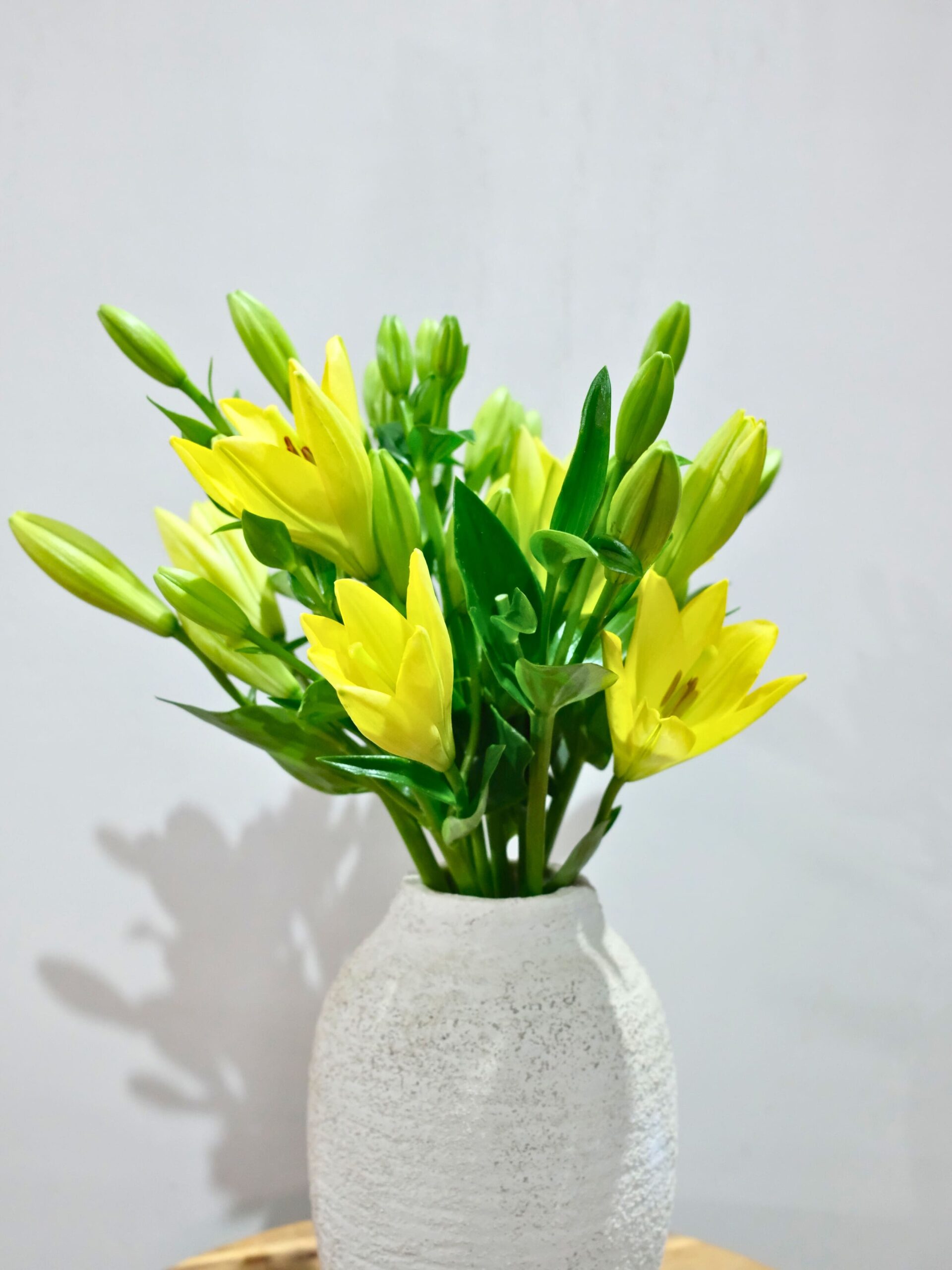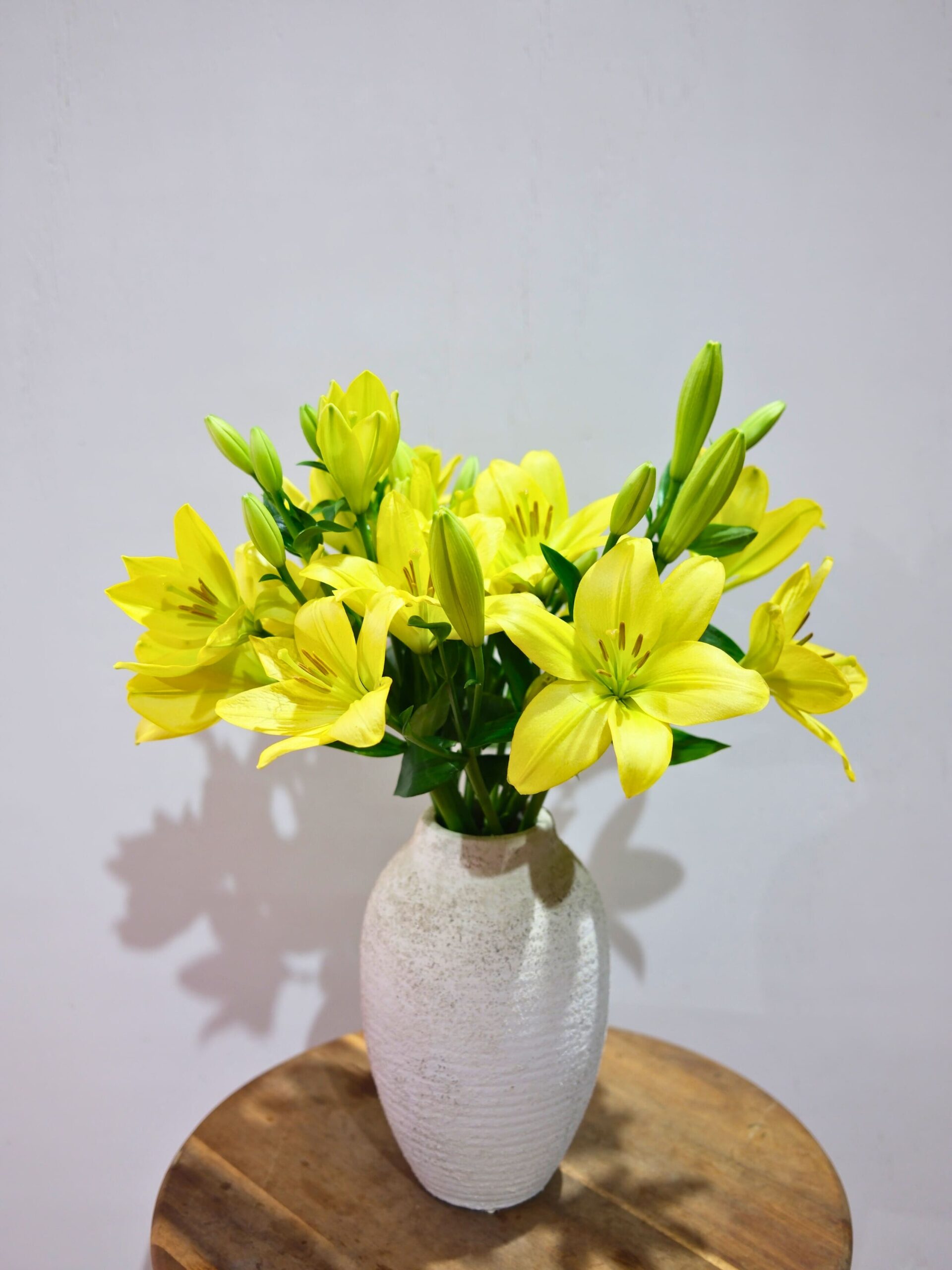 Este ramo de 10 tallos de lilium amarillo apuesta por la fuerza de lo esencial. Flores grandes, elegantes y con presencia, que llenan el espacio sin necesidad de mezclas ni adornos. Puro lilium, en su mejor versión.